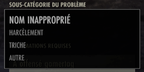- Sélectionnez la sous-catégorie correspondante au signalement du joueur.